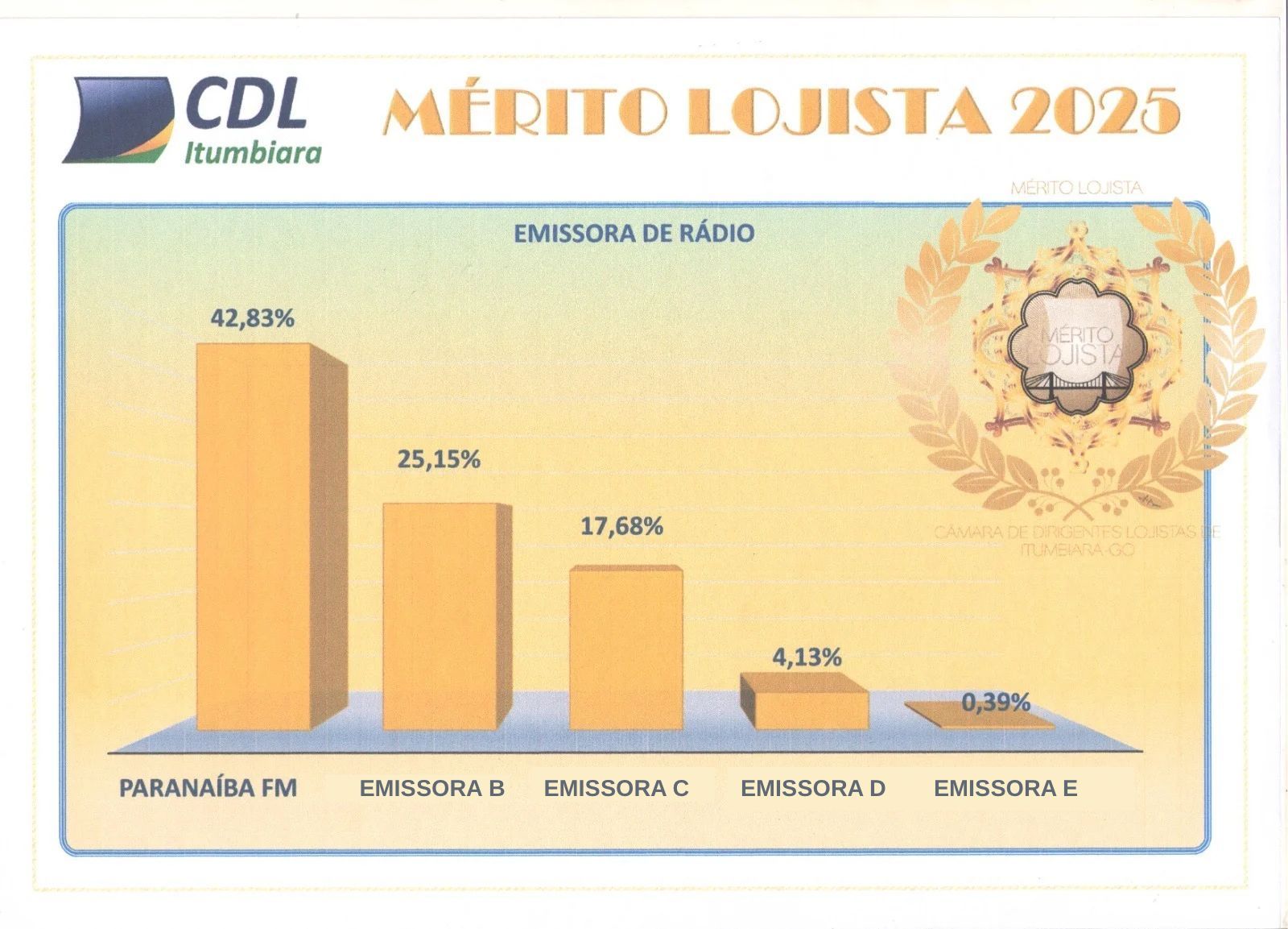 Paranaíba FM a mais lembrada na pesquisa mérito lojista 2025.